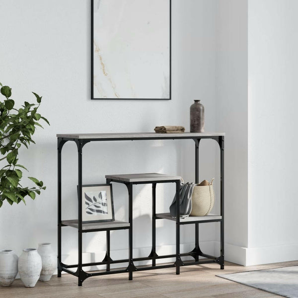 Deze klassieke wandtafel biedt een combinatie van duurzaamheid, ruimte en esthetiek. Het bewerkte hout zorgt voor een hoogwaardig, glad oppervlak dat sterk, stabiel en vochtbestendig is. Met de totale afmetingen van 89,5 x 28 x 76 cm (B x D x H) biedt de tafel meer dan voldoende opbergruimte voor boeken, planten, opbergdozen en decoraties. Het stevige zwart gepoedercoate stalen frame geeft extra stabiliteit en stevigheid, wat ook de uitstraling van de tafel ten goede komt. Maak een statement in je interieur door je favoriete foto's of decoraties op de onderste schappen van de bijzettafel te plaatsen.
