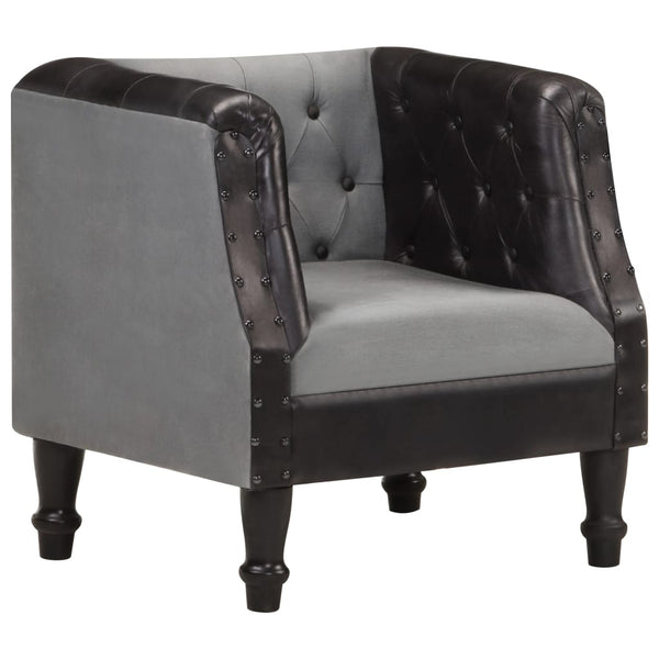 Deze kuipstoel is bekleed met echt geitenleer en canvas, dat zacht aanvoelt. De leren stoel wordt ondersteund door sterke mangohouten poten, die extra stevigheid en stabiliteit bieden. Daarnaast is de bekleding afgewerkt met klinknagels voor een industriële uitstraling. Dankzij de gebogen armleuningen en de dikke, gevoerde zitting en rugleuning, is de leren fauteuil de perfecte plek om comfortabel te zitten.
