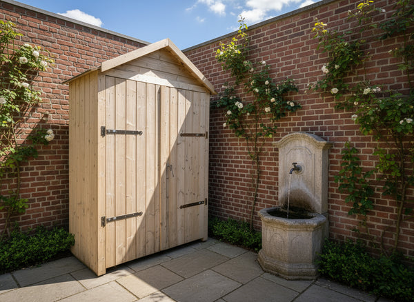 Deze houten tuinkast komt met voorgemonteerde panelen, waardoor de installatie een fluitje van een cent is. Geen gedoe meer met het in elkaar zetten van losse onderdelen; zet hem eenvoudig in elkaar en geniet direct van extra opbergruimte in je tuin.