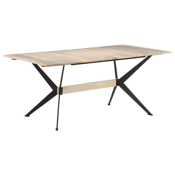 Der Esstisch besteht aus massivem Mangoholz, einem Hartholz, das für seine dichte Maserung und Haltbarkeit bekannt ist. Dieses Material ist sehr belastbar und verschleißfest, was eine lange Lebensdauer gewährleistet. Die Handwerkskunst, die in diesen Tisch eingeflossen ist, stellt sicher, dass jeder Schritt des Produktionsprozesses mit Sorgfalt und Präzision ausgeführt wurde, was jeden Tisch zu einem Unikat macht. Der industrielle Stil dieses Möbelstücks macht es zu einer schönen Ergänzung für verschiedene Einrichtungsgegenstände.