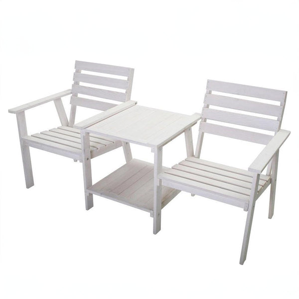 Genießen Sie intime Gespräche und Entspannung mit dem weißen Romeo zu zweit. Dieses Set besteht aus zwei Stühlen mit einem Tisch dazwischen für ein gemütliches Beisammensein.