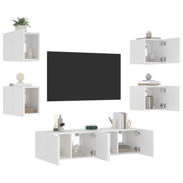 6-teiliges TV-Wohnwand-Set mit LED-Beleuchtung, handgefertigtes Holz