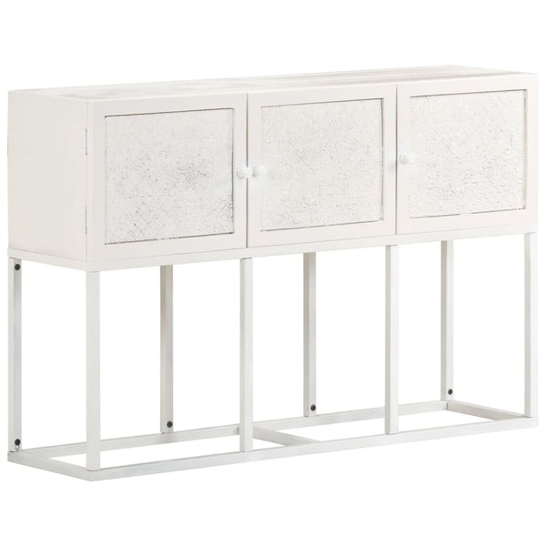 Der Seitenschrank ist aus massivem Material gefertigt Mangoholz, ein tropisches Hartholz, das viel Gewicht tragen kann. Außerdem ist es verschleißfest und macht den Schrank stabil und langlebig. Der pulverbeschichtete Eisenrahmen sorgt für zusätzliche Stabilität. Dieser Schrank verfügt über 3 Türen, die ausreichend Stauraum bieten. Die stabile Holzplatte kann zum Platzieren von Dekorationsgegenständen wie Fotorahmen und Topfpflanzen verwendet werden.