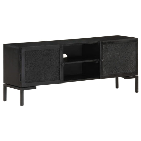 Die TV-Möbel Stravino| Zomango wird aus massivem Mangoholz hergestellt, einem tropischen Hartholz, das für seine außergewöhnliche Festigkeit bekannt ist. Dieses Hartholz ist leicht belastbar und zudem verschleißfest, was eine lange Lebensdauer der Möbel gewährleistet. Mit den Maßen 115 x 30 x 46 cm (B x T x H) bietet dieses Möbelstück mit seinen zwei Regalen und zwei Türen reichlich Stauraum, ideal für die Aufbewahrung von Multimedia-Geräten, Büchern und anderen wichtigen Dingen. Der robuste pulverbeschichtete Stahlrahmen sorgt für zusätzliche Stabilität und ein modernes Aussehen.