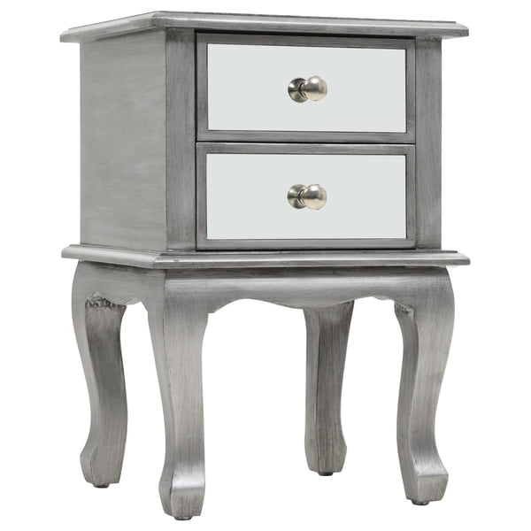 Avec son aspect luxueux dû au verre miroir associé à la finition industrielle du MDF, cette table de chevet offre un charme unique. Les pieds incurvés élégants et le plateau spacieux en font un choix pratique, tandis que les tiroirs doublés de molleton offrent un espace de rangement élégamment organisé.