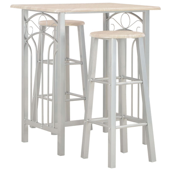 Fabriqué à partir de bois et d'acier durables et de haute qualité, cet ensemble de bar 3 pièces est conçu pour résister aux intempéries. Cela signifie que vous n'avez pas à vous soucier des éléments, ce qui en fait un excellent choix pour une utilisation intérieure et extérieure. Les surfaces de l'ensemble sont faciles à nettoyer, ce qui facilite l'entretien. Grâce aux cadres en acier robustes, la stabilité est garantie pendant l'utilisation. Un avantage supplémentaire sont les tabourets de bar, qui disposent de repose-pieds intégrés à deux hauteurs différentes, ce qui garantit un confort d'assise optimal. Lorsque les chaises ne sont pas utilisées, elles peuvent être élégamment rangées sous la table, ce qui permet d'économiser de l'espace et contribue à une apparence soignée.