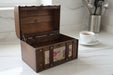Le coffre est fabriqué en polywood (matériau bois) avec des accents en similicuir pour un look vintage authentique et une bonne durabilité.